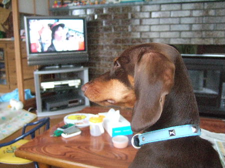 チョコさんもTVに釘付けです。