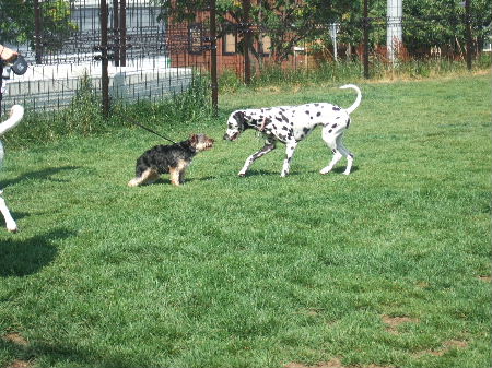 よそのワンちゃんにガウガウされてました(≧m≦)プッ